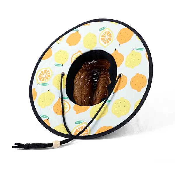 For lifeguard straw hat, a good-looking under brim is necessary. You can custom your own print underneath, we also have in-stock underneath. Popular ones are flamingos, coconut trees, American flags, pineapple grids. We also design different under brims every month.